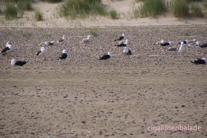 Nous côtoyons des colonies d’oiseaux marins qui nichent dans les dunes. Avec ce cahotement, les photos sont difficiles !