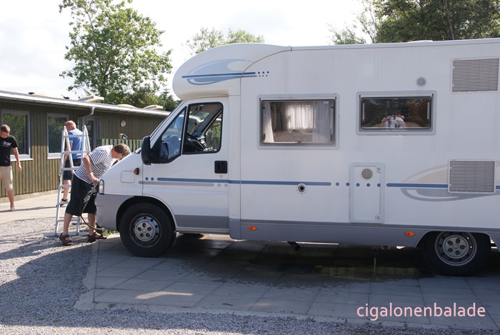 Nous nous arrêtons à Sindal, à l’intérieur des terres. Pas la peine d’essayer ce soir de trouver un camping au bord de la mer !