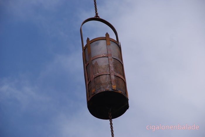 Le charbon est brûlé dans un contenant en fer, hissé en l’air pour qu'il soit vu de loin tout en protégeant du feu la structure en bois du phare.