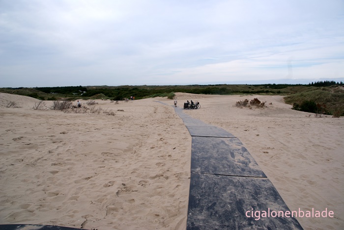 Par rapport à la Rubjerg Knude, elle est plus facile d’accès. Il suffit de suivre le long ruban noir qui forme un tapis.
