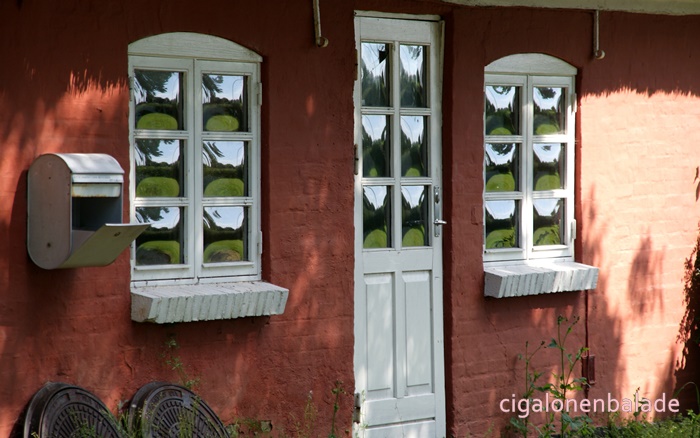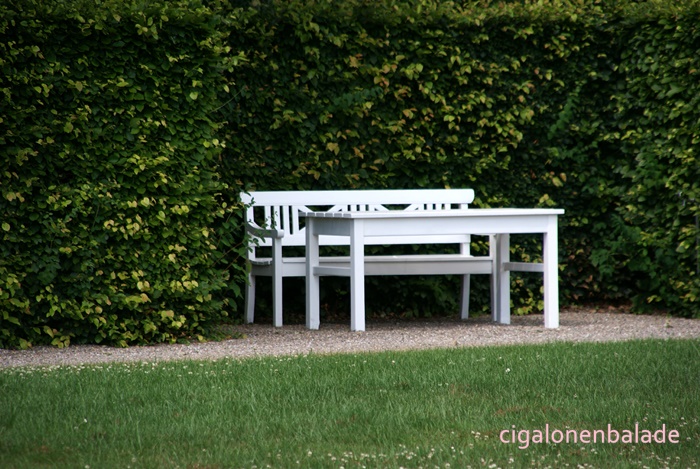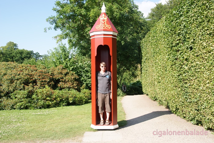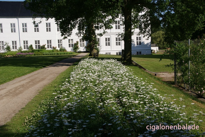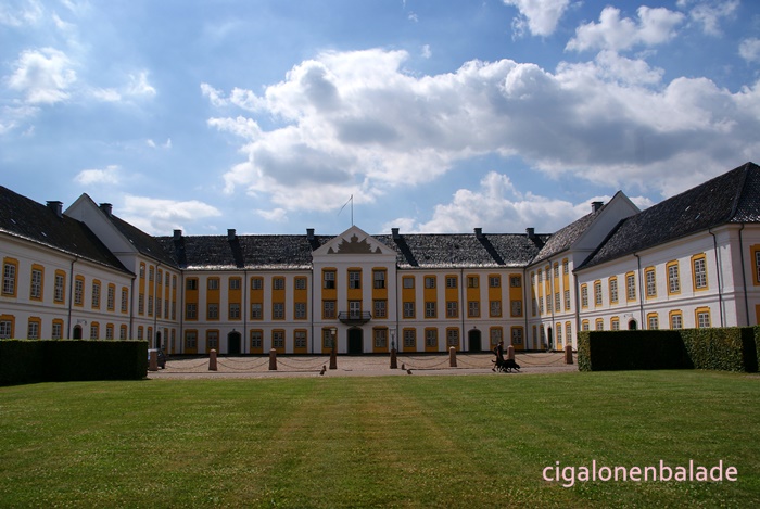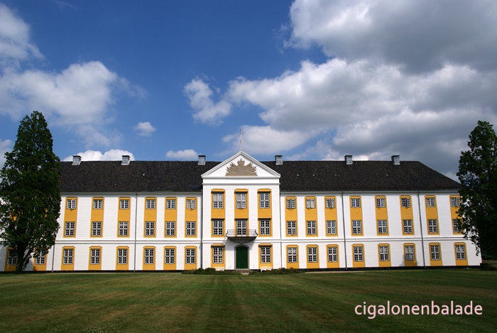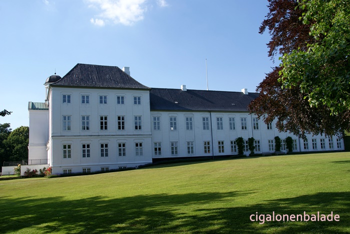 Le château, tout blanc et trônant au milieu d’un énorme parc, entouré d’eau et de forêt, ne se visite pas mais l’accès au parc est libre. Une notice explicative en danois, anglais et allemand attend même le visiteur. Aucune interdiction …