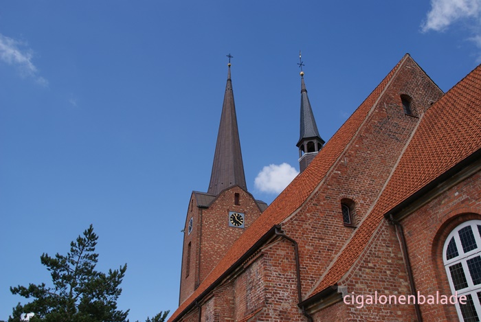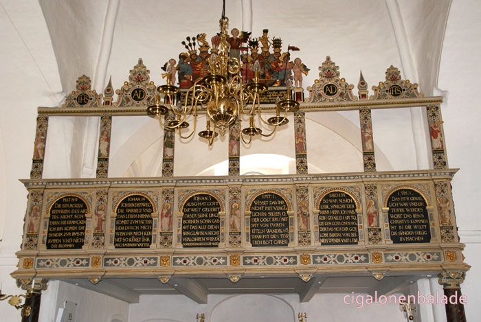 Pendant que Gabriel sort la ménagerie de la niche, j’en profite pour faire un petit tour à l’intérieur de l’église. La majorité des Danois sont de confession luthérienne. L’église est dépouillée sauf les tableaux sculptés. Le temps de prendre quelques photos et par la même occasion le frais et la visite de Sønderborg peut commencer !