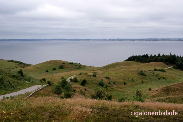 L’étape suivante nous mène à la falaise de Feggeklit, endroit où Hamlet aurait tué son oncle et son beau-père. Elle semble comme posée au bord de la digue qui mène au ferry.