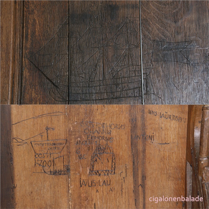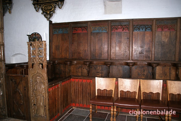 Les stalles vieilles de 600 ans, en chêne foncé, sont curieusement marquées de dessins gravés. Les carmélites s’ennuyaient-elle durant les célébrations et passaient alors le temps en gravant le bois ? Les bancs sont ornés de miséricordes