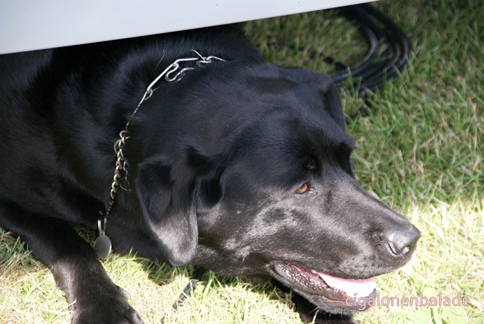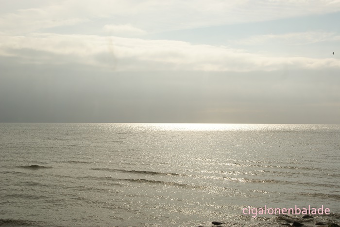 Pour déjeuner, nous déplaçons Cigalon sur l’arrière du parking, près de la digue. Un essai de connexion aboutit et je peux ainsi mettre en ligne le compte-rendu d’hier ainsi que les photos. Une bonne chose de faite ! Je suis à jour !
