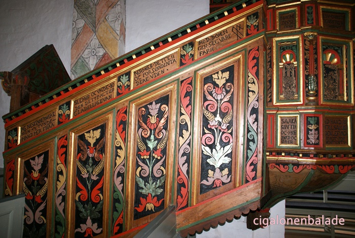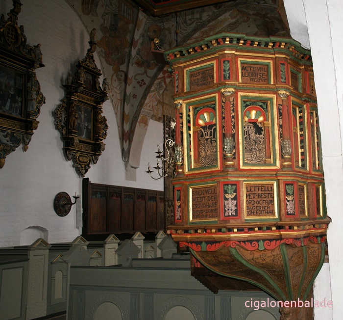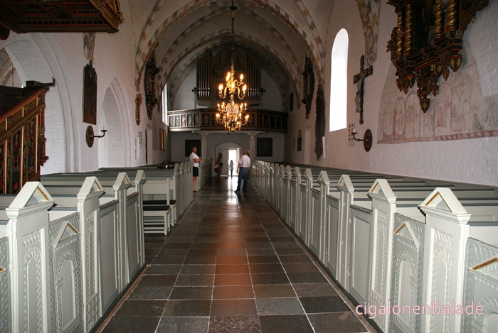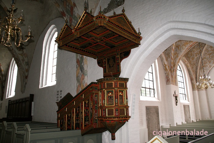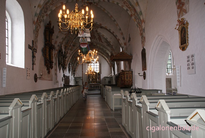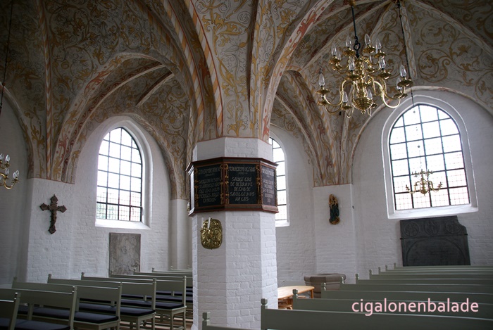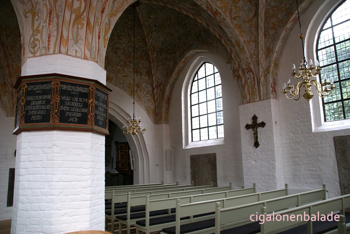 Les murs et le plafond sont recouverts de nombreuses fresques représentant des passages de l'Ancien et du Nouveau testament. Peu de temps après l’achèvement des transformations de l’église, en 1536, le Danemark adopte la Réforme et les monastères sont fermés. Outre l’église qui est conservée, les bâtiments du monastère de Sæby sont détruits. Les fresques, alors recouvertes, n’ont été remises au jour et restaurées qu’au début du XXème siècle (1905-1906).
