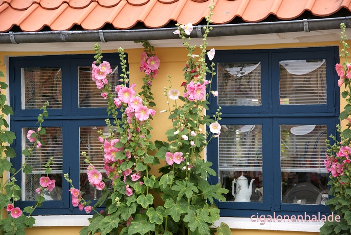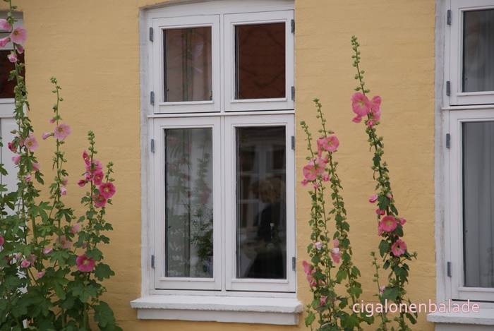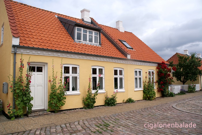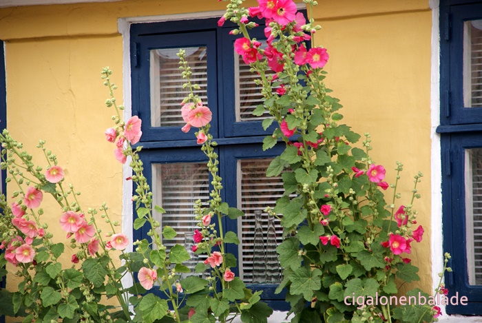Depuis le port, nous rejoignons rapidement l’Ulgade bordée de coquettes maisons basses du début du XVIIIème siècle. Certaines sont adorables avec leurs roses trémières.