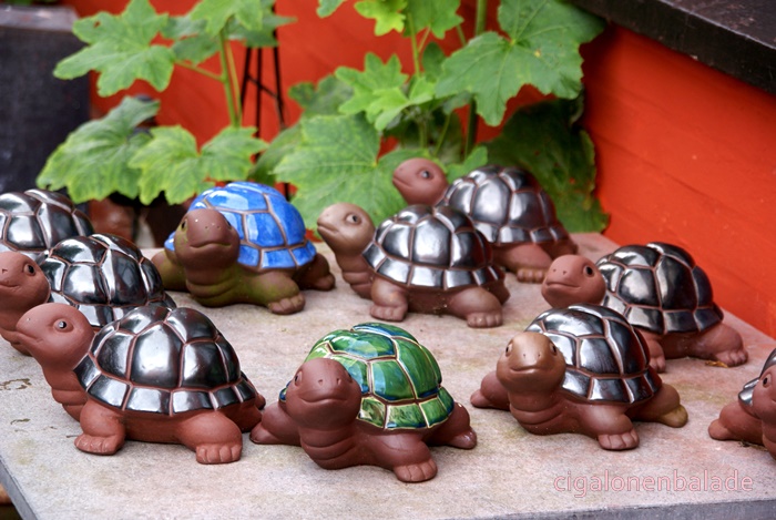 Quelques maisons sont occupées par des artisans qui proposent de beaux objets de décoration. Il faut bien orner les tablettes de leurs fenêtres .…