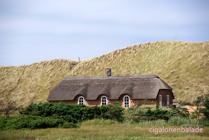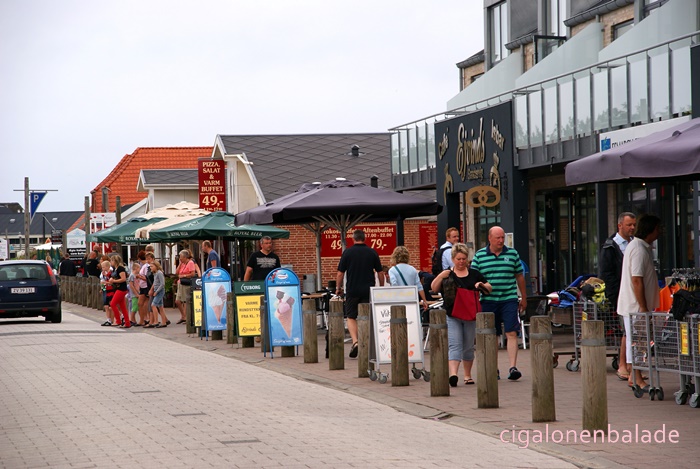 Notre premier arrêt se fait à un kilomètre du camping, à Sondervig. C’est une petite station balnéaire et nous voyons pour la première fois des touristes, essentiellement danois. On retrouve un peu l’ambiance des lieux de villégiatures français avec leurs restaurants et magasins de souvenirs. Malgré le monde, nous n’avons pas de problème pour garer Cigalon.