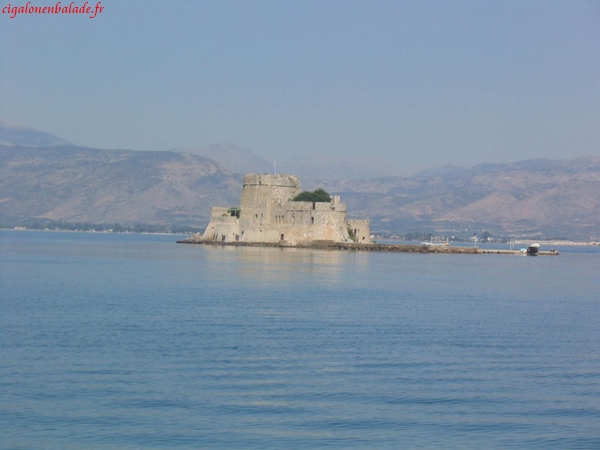 Nauplie est bâtie sur une presqu’île rocheuse au fond du golfe argolique. Ce fut la première capitale de la Grèce libérée en 1829. C’est là que s’installa le roi Othon en 1833 avant de transférer la capitale à Athènes. La vieille ville est dominée par la citadelle Palamède qui culmine à 216 m. Une autre citadelle protégeait la ville, celle du Bourtzi qui s’appelait en fait Saints Théodores et qui a été fortifiée par les Vénitiens. (1389/1540). Après la libération de la Grèce, elle devint la résidence des bourreaux exécutant les condamnés à mort.