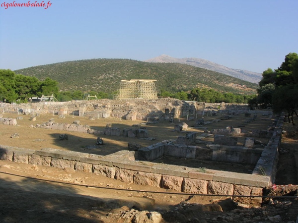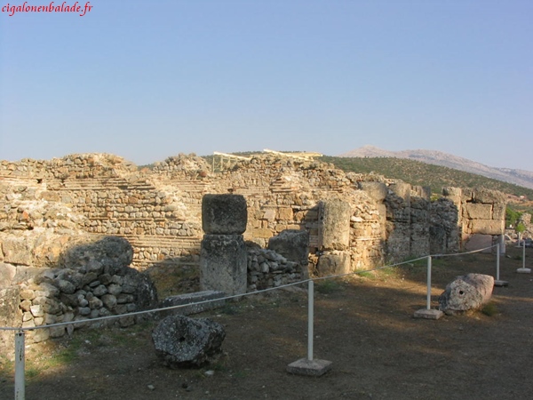 Par contre le restant du site est en cours de restauration ce qui donne à l’ensemble un air de vaste chantier. Nous essayons de reconnaître les différents monuments grâce au guide bleu. Pas évident lorsqu’il ne reste bien souvent que les traces au sol.