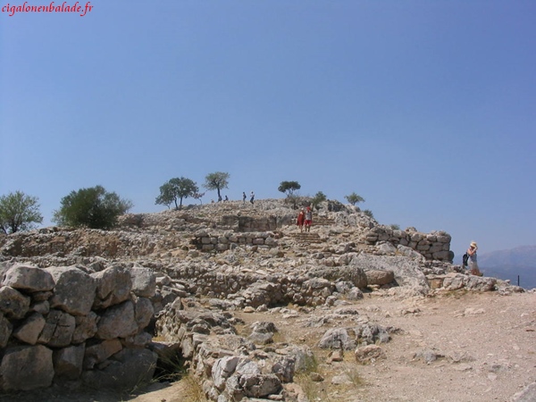 Mycènes est située sur une colline aride brûlée par le soleil. L’ombre est rare et seuls quelques frêles oliviers nous abritent.