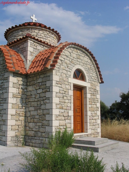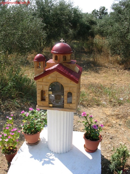 Depuis notre départ de Patras, nous remarquons devant les maisons ou au bord des routes des reproductions de petites chapelles orthodoxes, certaines très belles. Gabriel croit tout d’abord qu’il s’agit de boîtes aux lettres mais en fait ce sont de petites chapelles votives élevées par les habitants en majeure partie de religion orthodoxe.