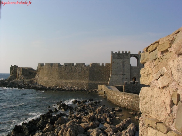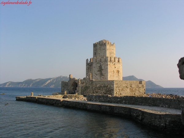 A Méthoni, la forteresse du XIIIème siècle est de toute beauté. Elle donne sur la mer par trois de ses côtés et se termine par la tour du Bourtzi du XV/XVIème siècle faisant face à l’île Sapiendza. La baie est magnifique surtout en cette fin de journée !
