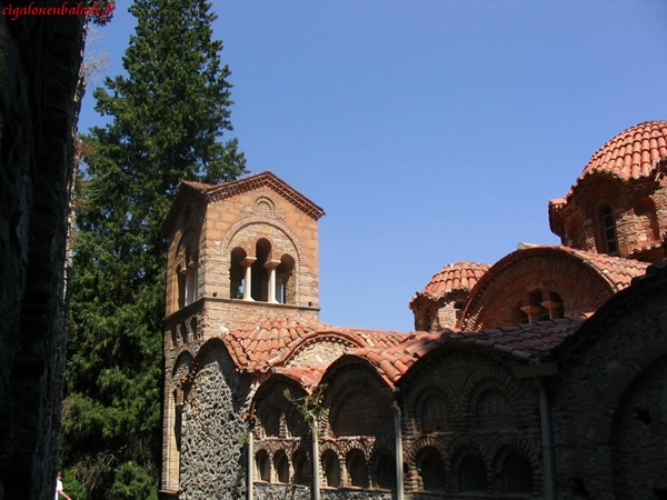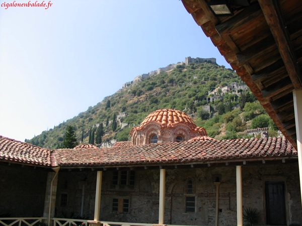 Dominant la ville basse, le monastère de Brontochion en ruines regroupe deux églises : Saints Théodores et l’Hodigitria ( début du XIVème siècle) qui fait office d’église principale.