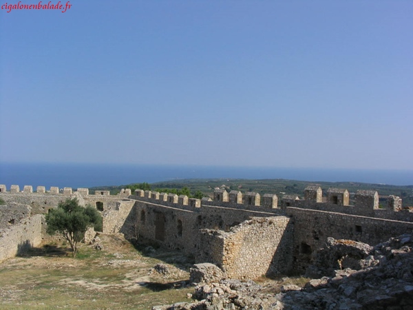 Nous commençons notre découverte du pays par le château de Chlememoutsi, ancienne citadelle du XIIIème siècle construite par Geffroy II de Villehardouin. Nous découvrons ainsi l’un des nombreux sites qui témoignent de la domination franque. Du sommet, on a une belle vue sur la mer toute bleue.