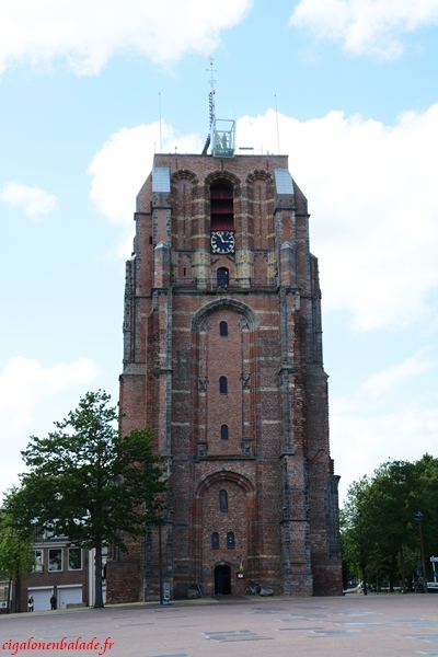 En arrivant, au loin, nous avons vu une tour carrée qui … penche ! Une constante dans ce pays. Nous nous en approchons et remarquons bien que nous n'avons pas rêvé. Il s'agit du Oldehove, érigé en 1529 et qui n'a jamais pu être terminé à cause de la stabilité de ses fondations.