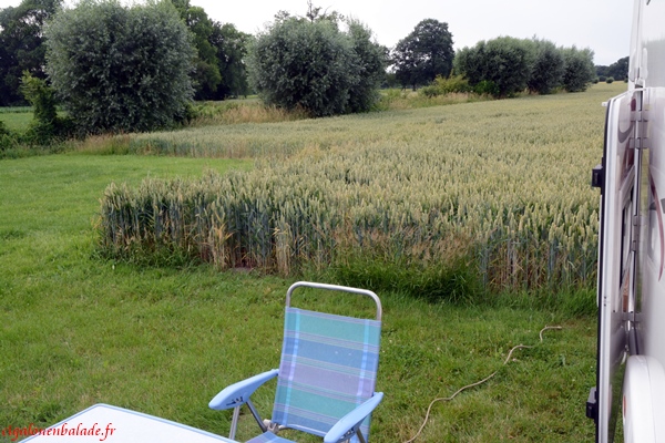 Nous terminons la journée à la ferme De Kolke qui accueille les camping-cars entre serres et champs de blé.