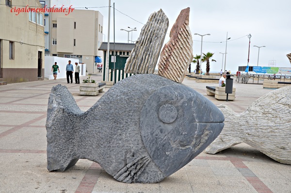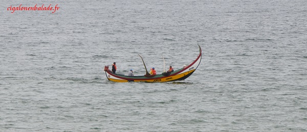 Les baigneurs se contentent de faire trempette. L’eau ne doit pas être très chaude. Un bateau de pêche traditionnel longe la plage et nous reconnaissons le Jovem découvert l’an dernier échoué sur le sable.